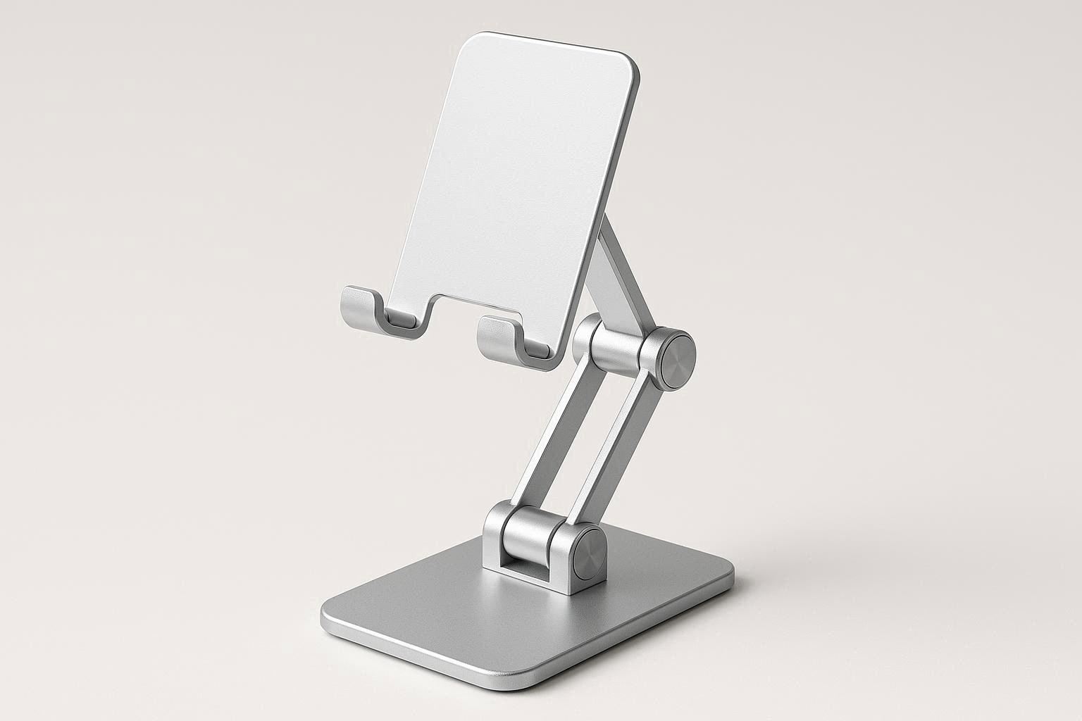 The stand measures 4.5 inches in length when folded and extends to a maximum height of 6 inches. The non-slip silicone pads on both the base and the support arms prevent scratching and ensure your device stays firmly in place. Its minimalist, metallic finish fits seamlessly into modern, industrial, or home office setups.
