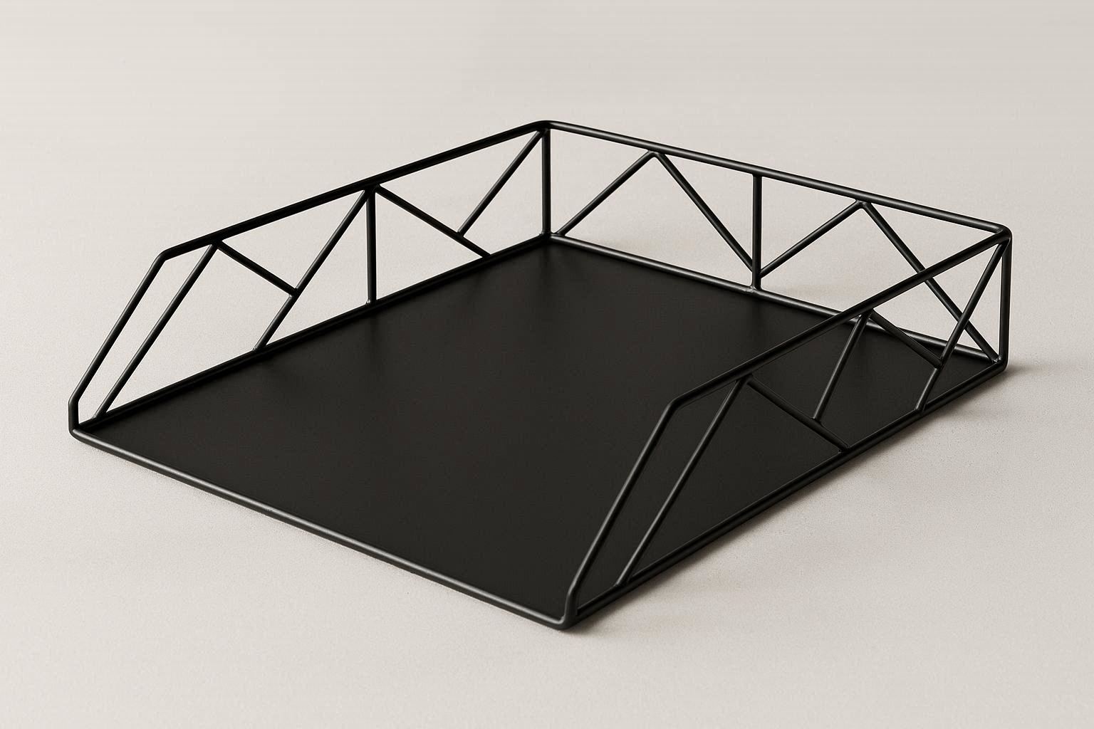 Geometric Black Metal Desk Organizer Tray