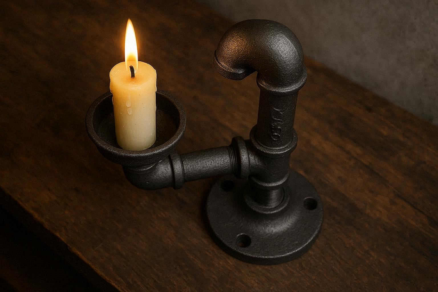 Inspired by vintage factory lighting, this industrial cast iron candle sconce mounts easily to walls or stands upright on your desk with its integrated heavy base. Its matte black finish and rugged texture bring an edgy, utilitarian aesthetic to home offices or workshops. The adjustable arm allows you to direct light precisely where needed, making it ideal for task lighting beside a monitor or as ambient mood lighting.